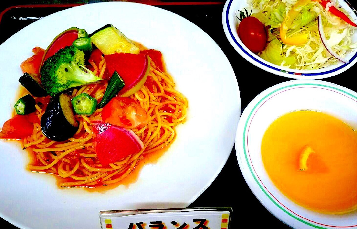 野菜がいっぱい!夏野菜の冷製トマトパスタセット580円!