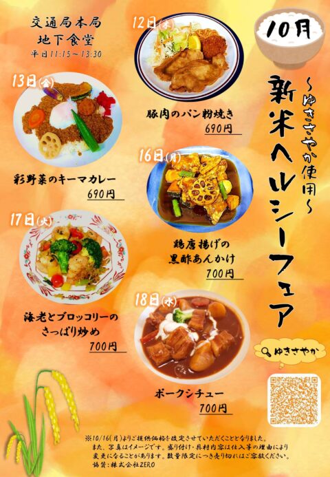 【白石・厚別区役所食堂・交通局本局食堂共催!】「新米ヘルシーフェア」は明日からスタートです♪