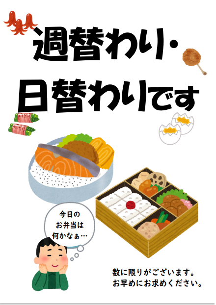 初回は11/1(水)です。以前取り扱っていたお弁当が無くなってしばらくぶりの販売になります。