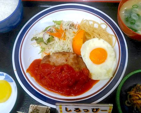 【しろっぴーランチ】目玉焼き&ハンバーグセット550円!