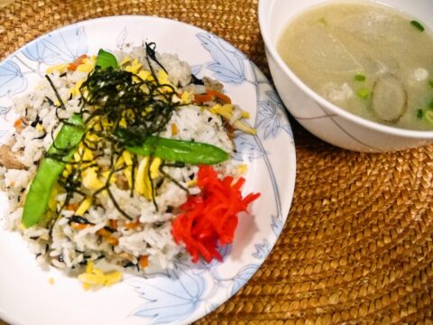 【すずらん定食】 鶏ひじきご飯と海老すりみ汁 550円