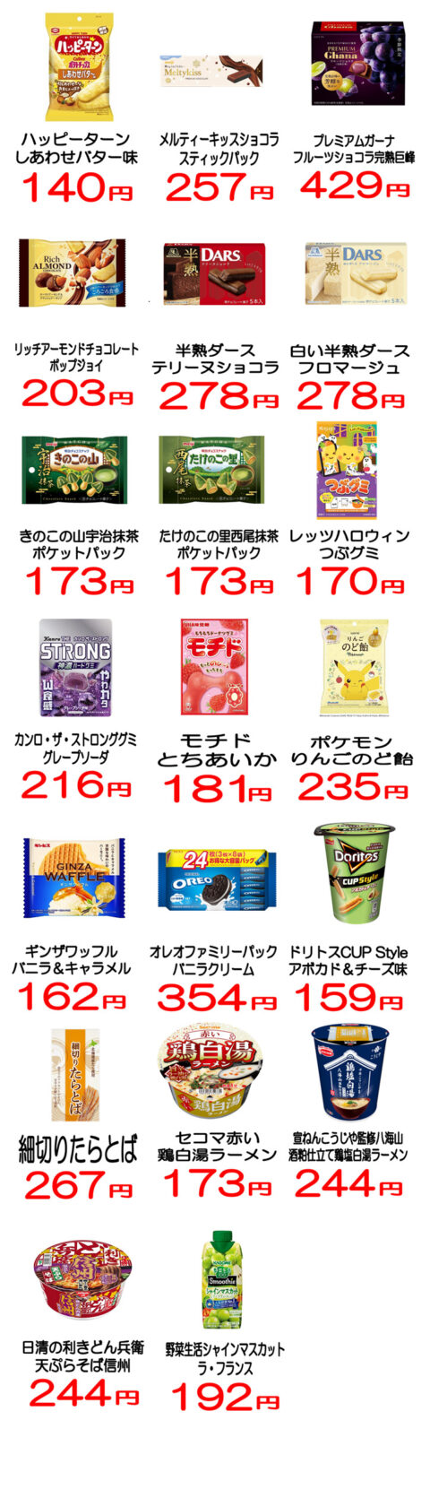 チョコレート系は高級感のあるプレミアムガーナ完熟巨峰味や半熟ダースの