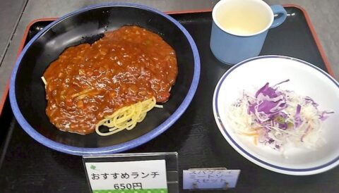 【おすすめランチ】スパゲティ・ミートソース スープ・サラダセット 650円!