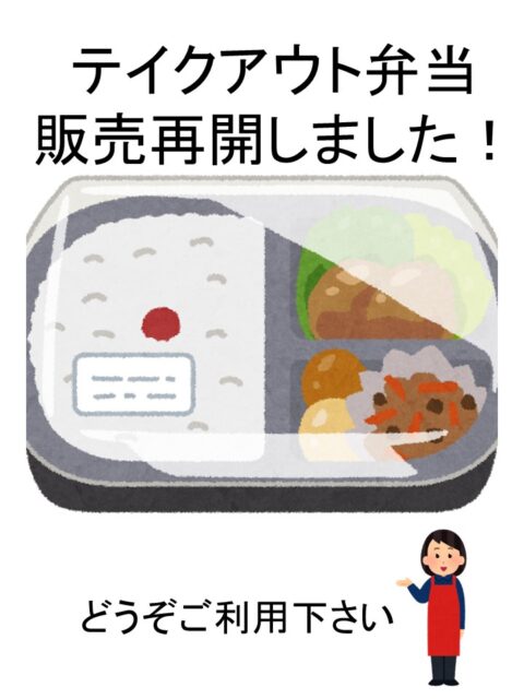 たいへんお待たせしました。併設売店でのお弁当陳列販売を再開しております。