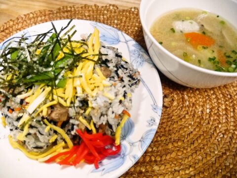 【すずらん定食】 鶏ひじきご飯と海老すりみ汁 550円