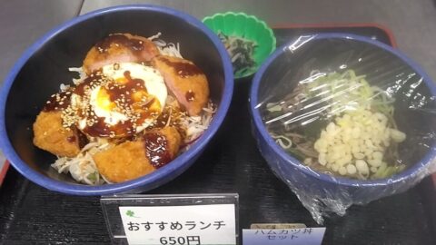 【おすすめランチ】ハムかつ丼・半そばセット 650円!