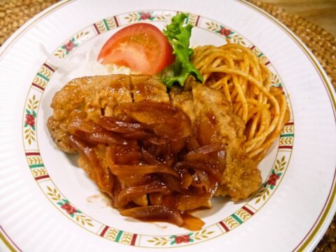 地下食堂内の様子です。奥の大きな窓からは地下食堂の名前から想像できないきれいな園庭を眺めることができます。