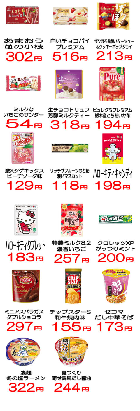 チョコ系は高級志向の白いチョコパイプレミアムや生チョコトリュフ芳醇ミルクティーなどが、