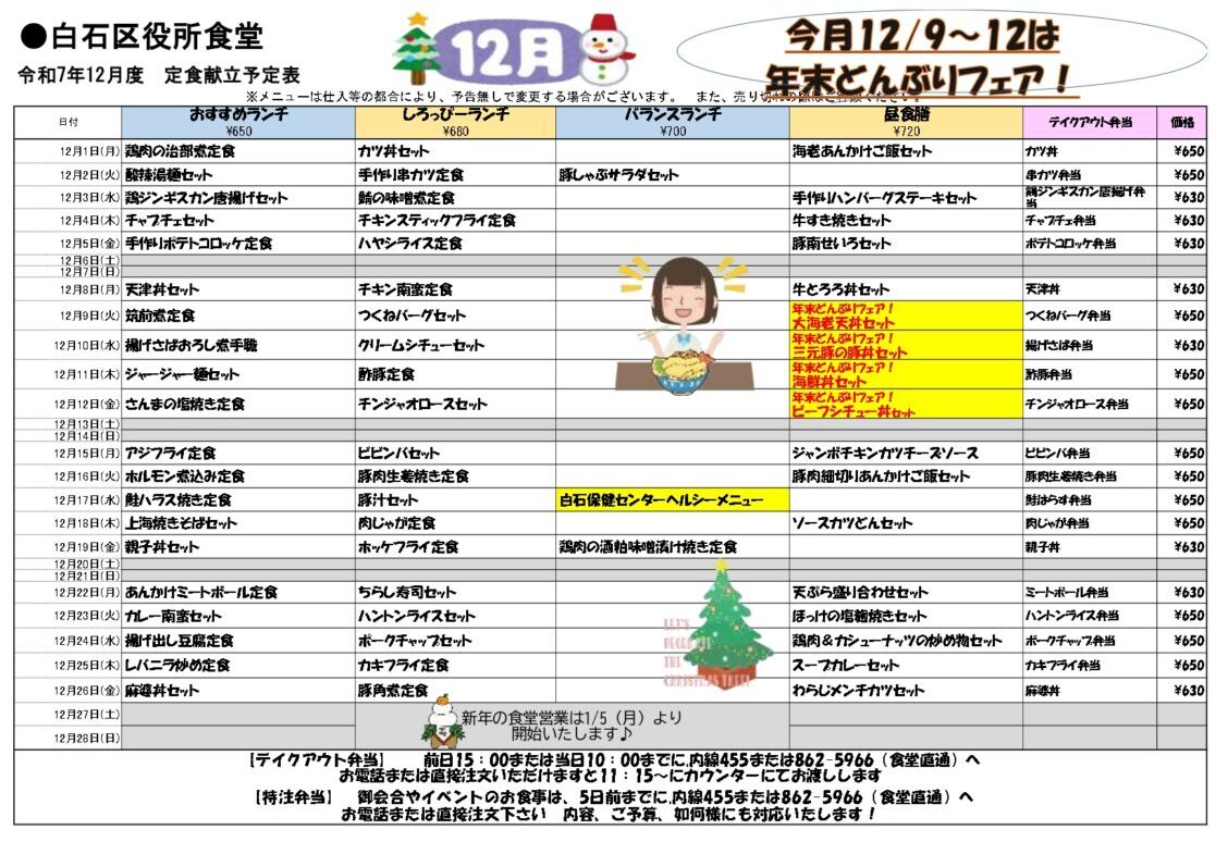 白石区役所食堂は、皆さまをおいしいお食事で応援します。