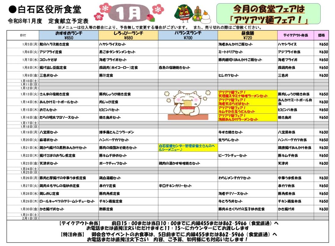 年明け1月のフェアは、恒例「アツアツ麺フェア!」を予定しております。