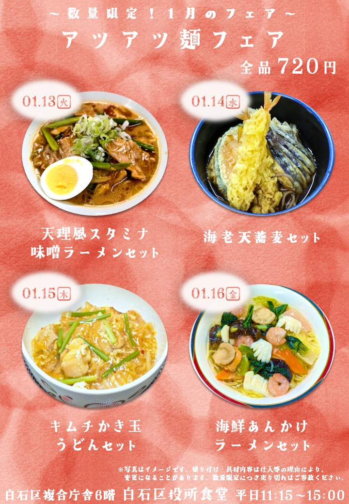 白石区役所食堂は、皆さまをおいしいお食事で応援します。