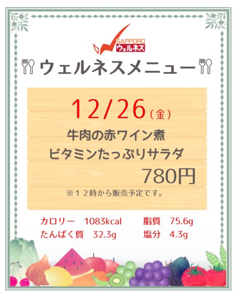 本日12時よりウェルネスメニューを販売いたします