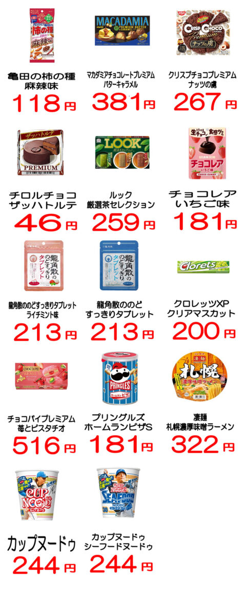 気になるのは柿の種麻辣味でしょうか・・・多分止まらなくて一回で全部食べてしまうかも(^^;)