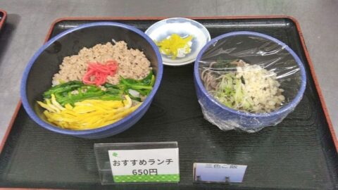 【おすすめランチ】三色丼・半そばセット 650円!