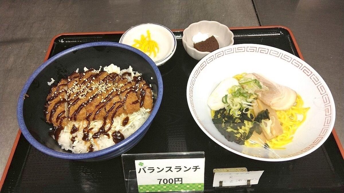 【バランスランチ】ソースかつ丼&ハーフ醤油ラーメンセット 700円!