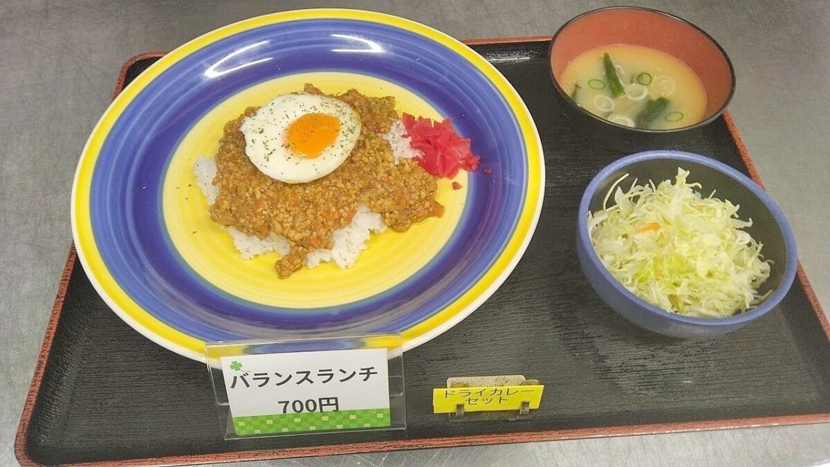 臨時!【バランスランチ】目玉焼きのせドライカレーセット 700円!