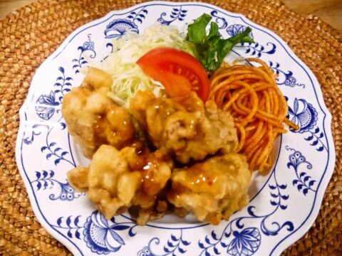 【時計台定食】 鶏ももサクサク揚げ甘辛だれ 600円