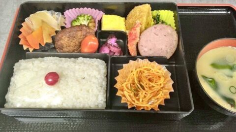 ↓コチラはお茶付き特注タイプお弁当例です。(1000円~)