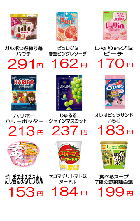 今週はグミがたくさん入荷しましたね。ピンクグレープフルーツソーダにピーチ、