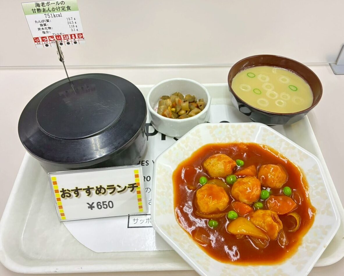 【おすすめランチ】海老ボールの甘酢あんかけ定食 650円!
