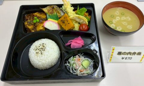 食堂内売店ではお弁当・お飲み物、カップみそ汁なども若干数販売しております。