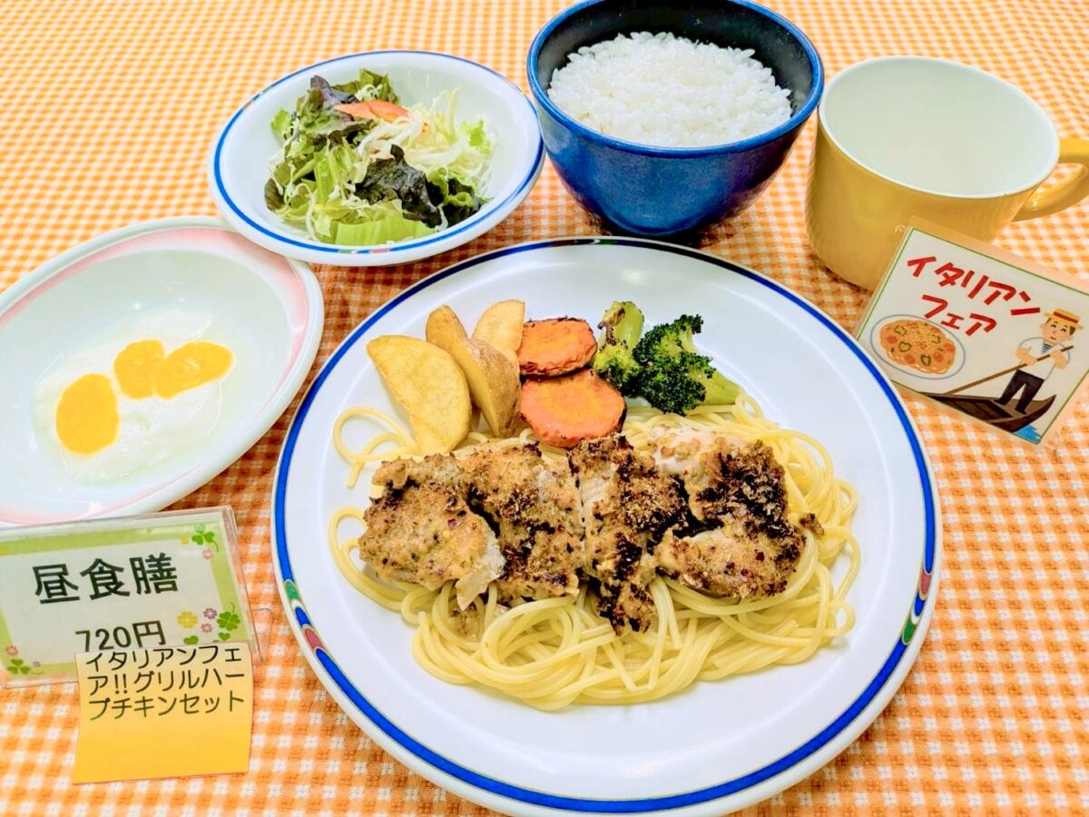 厚別区役所食堂・売店 4/9(木)本日の定食ご案内♪ イタリアンフェア本日③日目! 併設売店の食堂店長手造りお弁当、切手印紙・事業所用プリペイドごみ袋もご利用お待ちしております。
