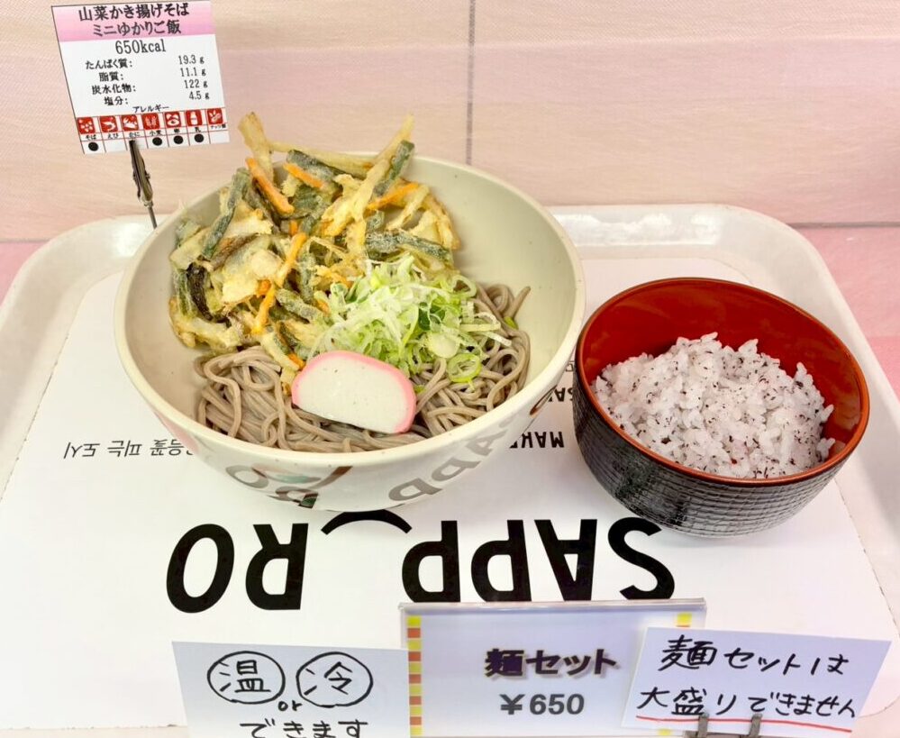 【麺セット】山菜かき揚げそば・ミニゆかりごはんセット 650円!