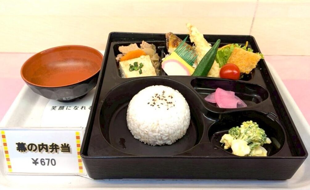 食堂内売店ではお弁当・お飲み物、カップみそ汁なども若干数販売しております。