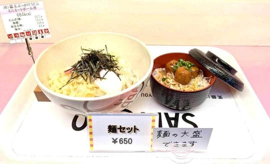 【麺セット】冷やし温玉ぶっかけうどん&ミニミートボール丼セット 650円!