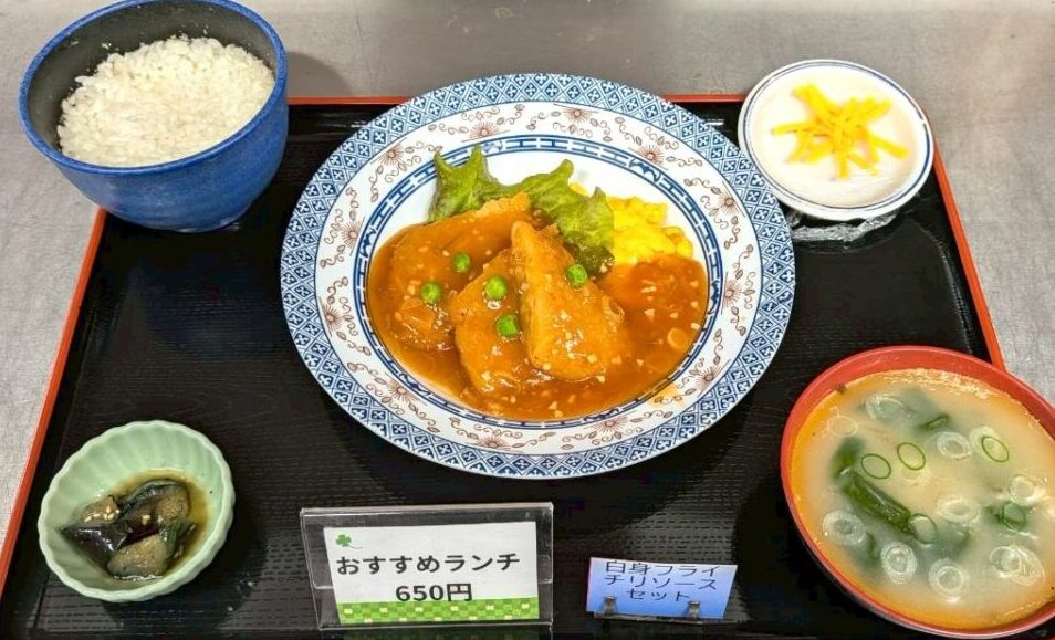 【おすすめランチ】白身魚フライのチリソースがけセット 650円!