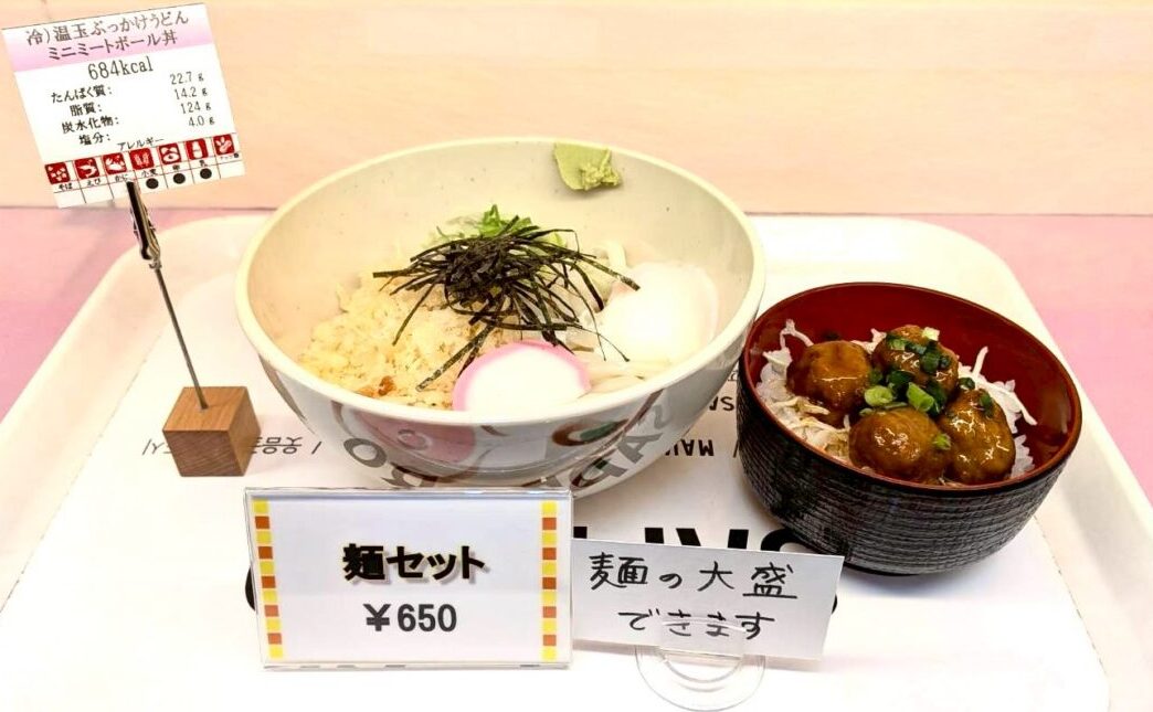 【麺セット】冷やし温玉ぶっかけうどん&ミニミートボール丼セット 650円!