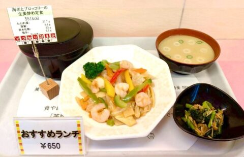 【おすすめランチ】海老とブロッコリーのしょうが炒め定食 650円!