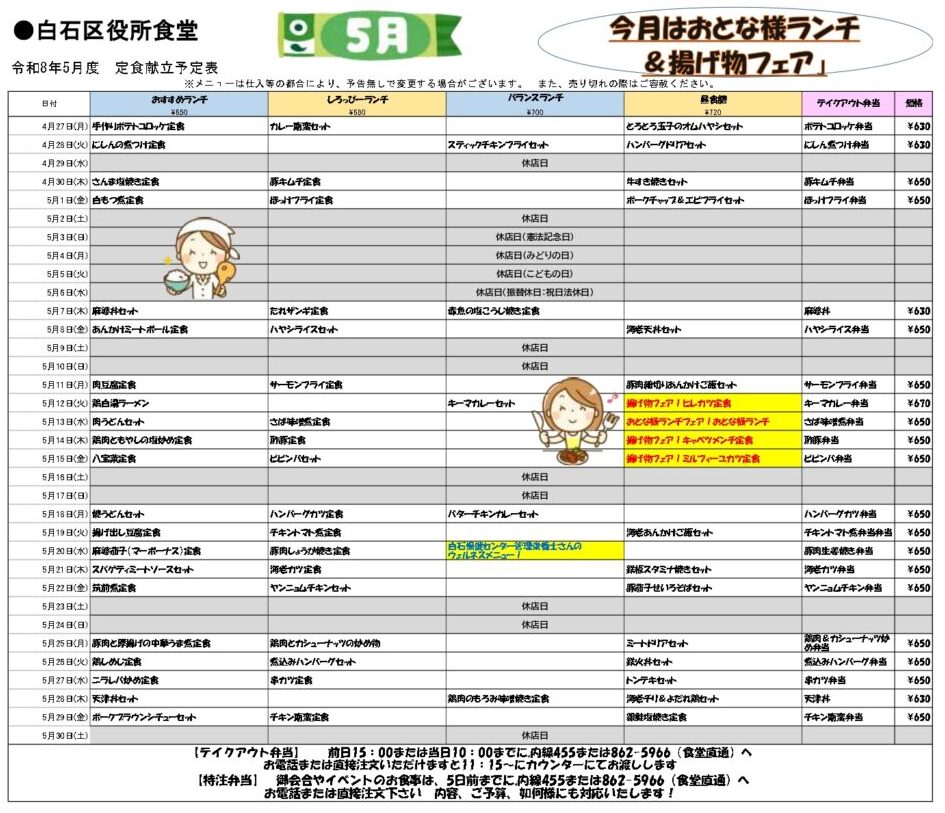 白石区役所食堂は、皆さまをおいしいお食事で応援します。